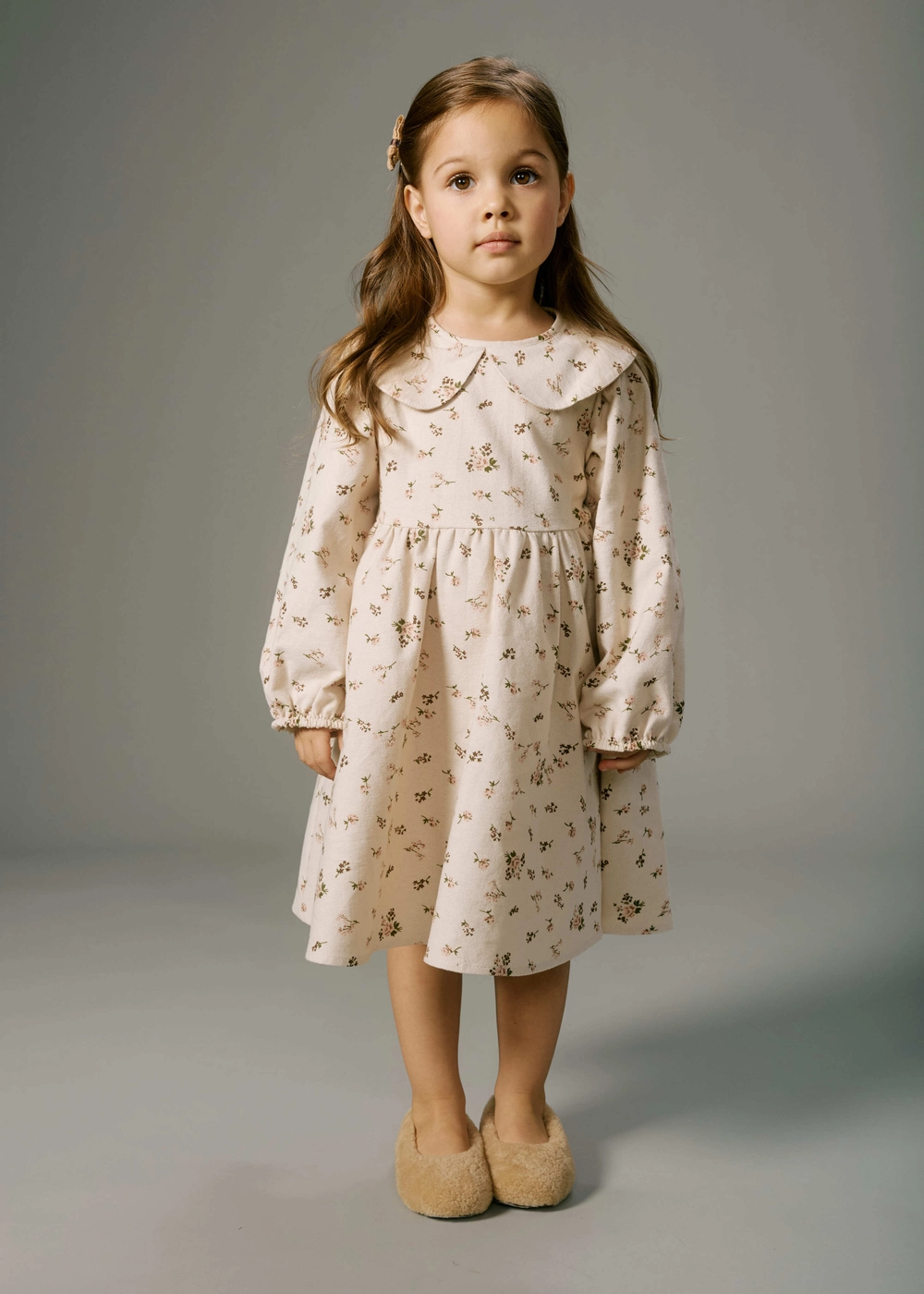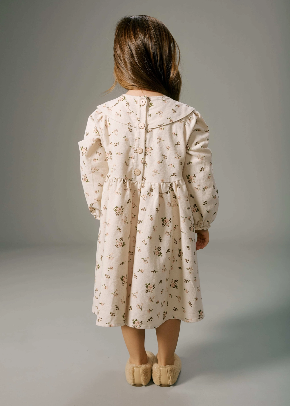 Платье из фланели — уютное, мягкое и нежное. Натуральный хлопок делает его комфортным в носке: подходит и для спокойных игр дома, и для зимних прогулок под курткой.