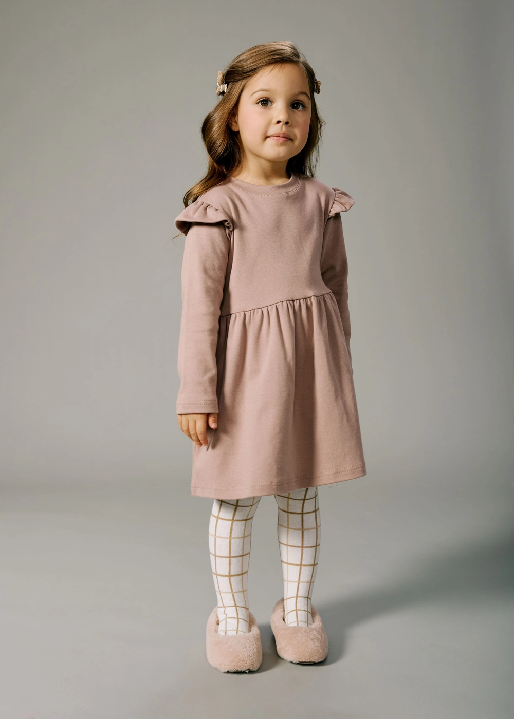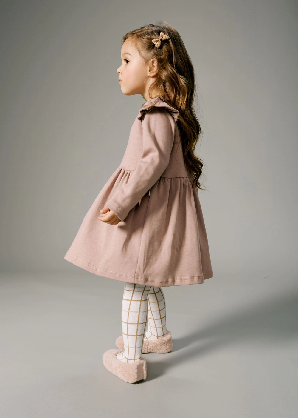Идеально подходит для прогулок, праздников и повседневного ношения. Эластичность материала обеспечивает свободу движений, а стильный дизайн подчеркнет красоту вашего ребенка.